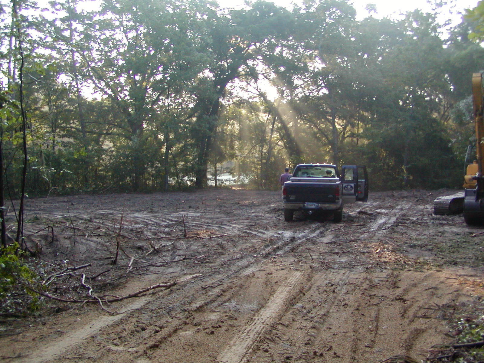 July 27, 2007 -- The morning sun is shining through the trees at Campbell's home site. About half of his acre lot is clear. The remainder will remain wooded. | ![]() |