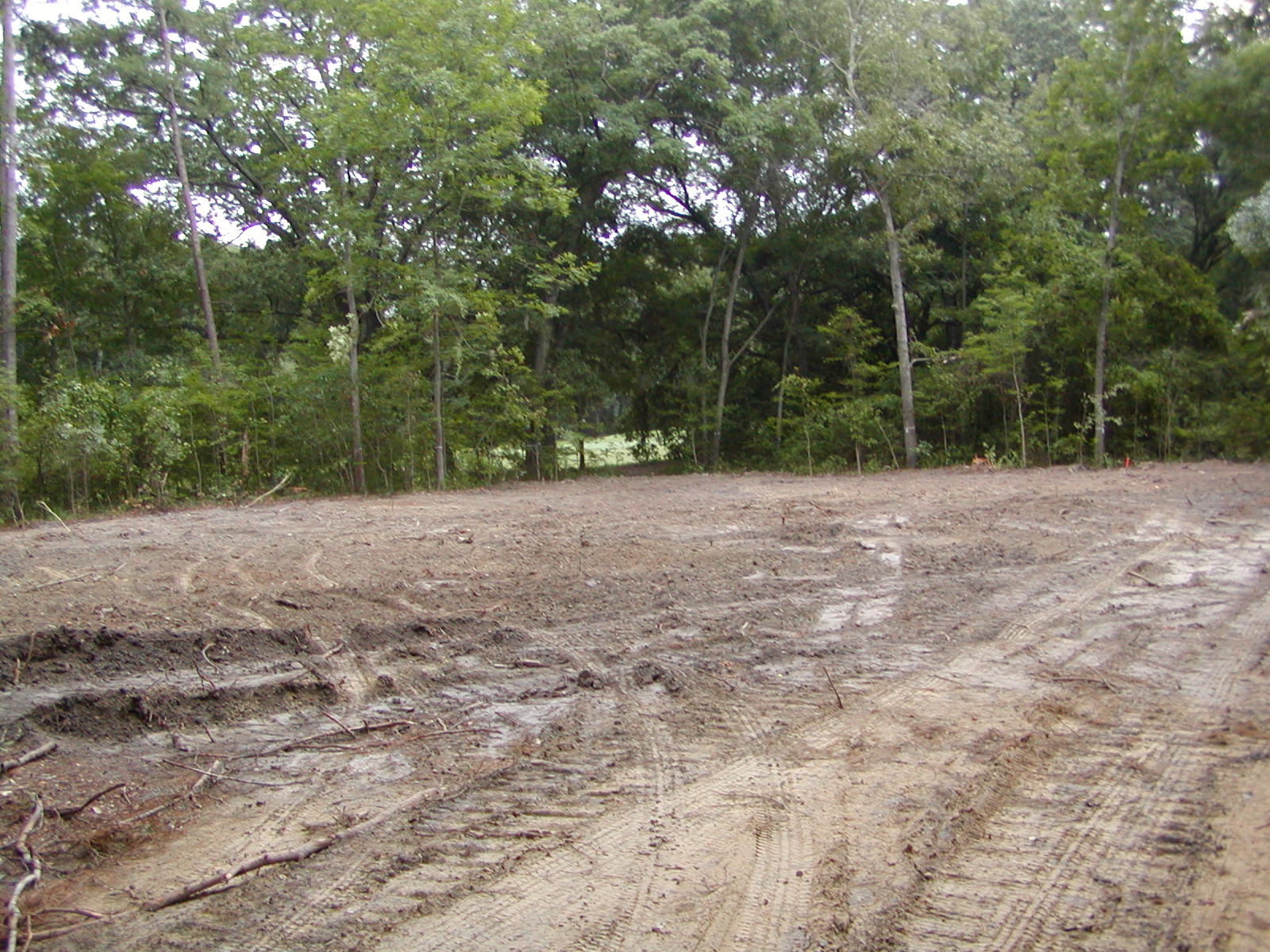July 30, 2007 -- The clearing is finished. Today, the lot will be graded. The house will be relocated on the lot. Before clearing, corners were marked with steel rods. Trenches for footers will be dug in a day or so. |