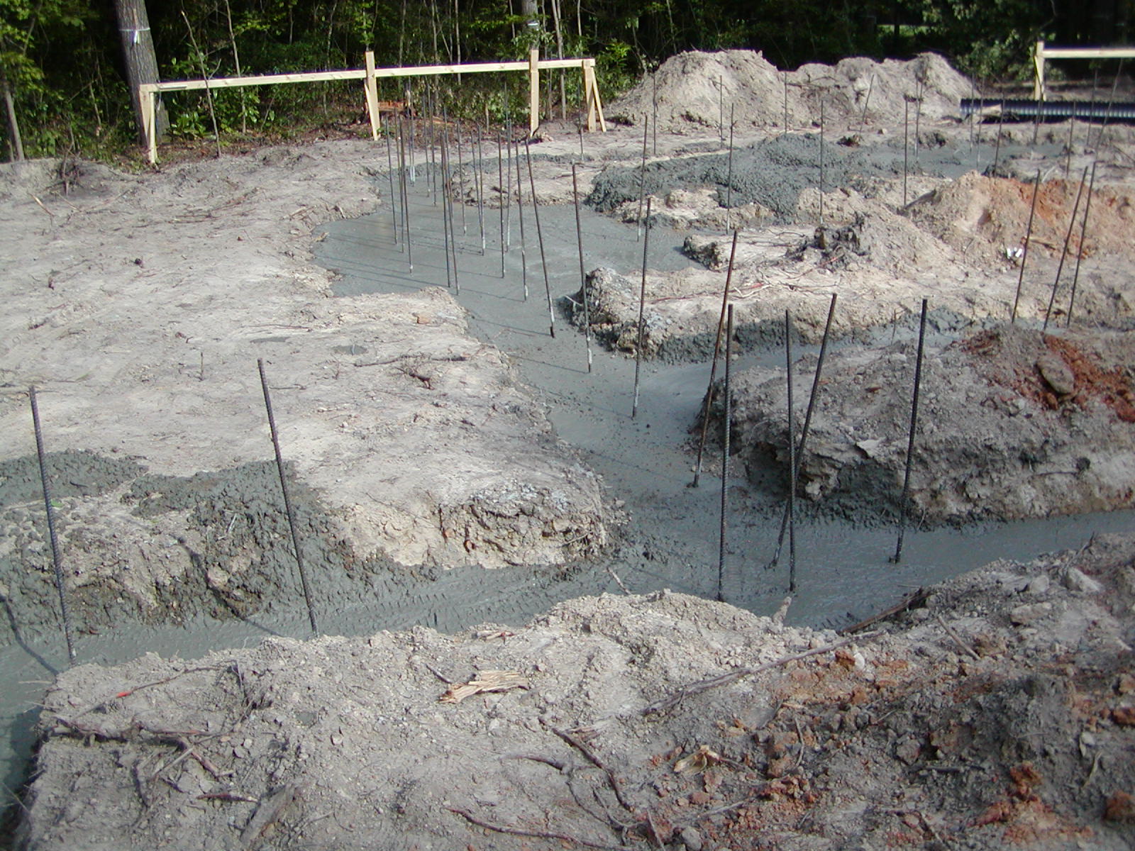August 2, 2007 -- The footers are being poured. The rebar is to firmly anchor the piers and anchors that are going to be built on the footers. | ![]() |