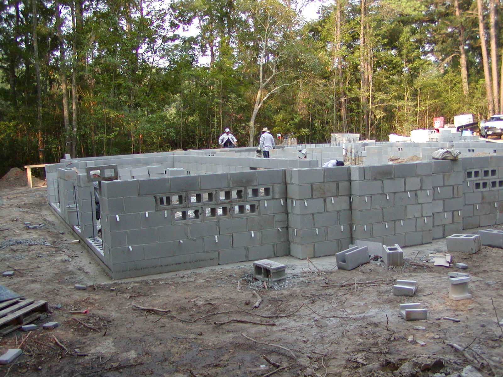 August 14, 2007 -- The block work will be finished today. A bond beam and garage inspection will be tomorrow. The bond beam will be poured Thursday. The garage and under the house will be poured Friday. |