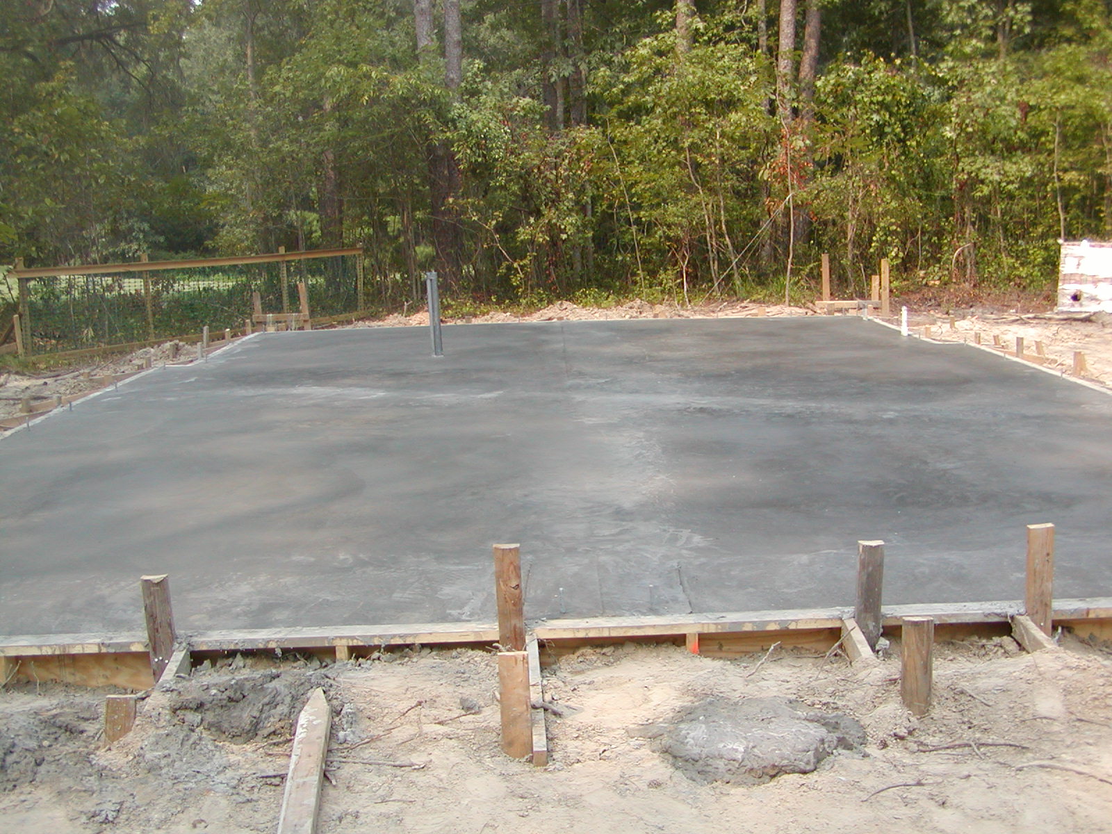 August 17, 2007 -- The garage slab was poured and finished today. The grey pipes at the back are for power. | ![]() |