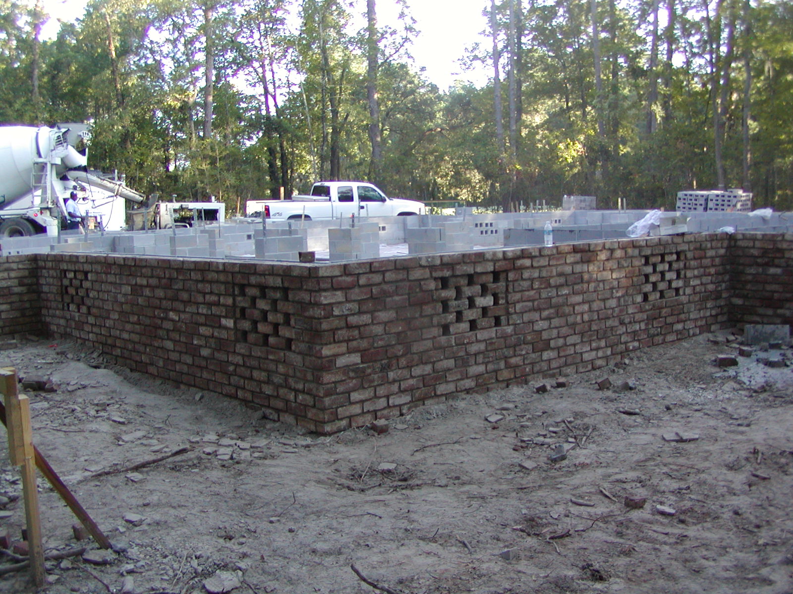 August 20, 2007 -- The brick curtain wall should be finished tomorrow. Straps are in place in the piers for anchoring the floor system beams. | ![]() |