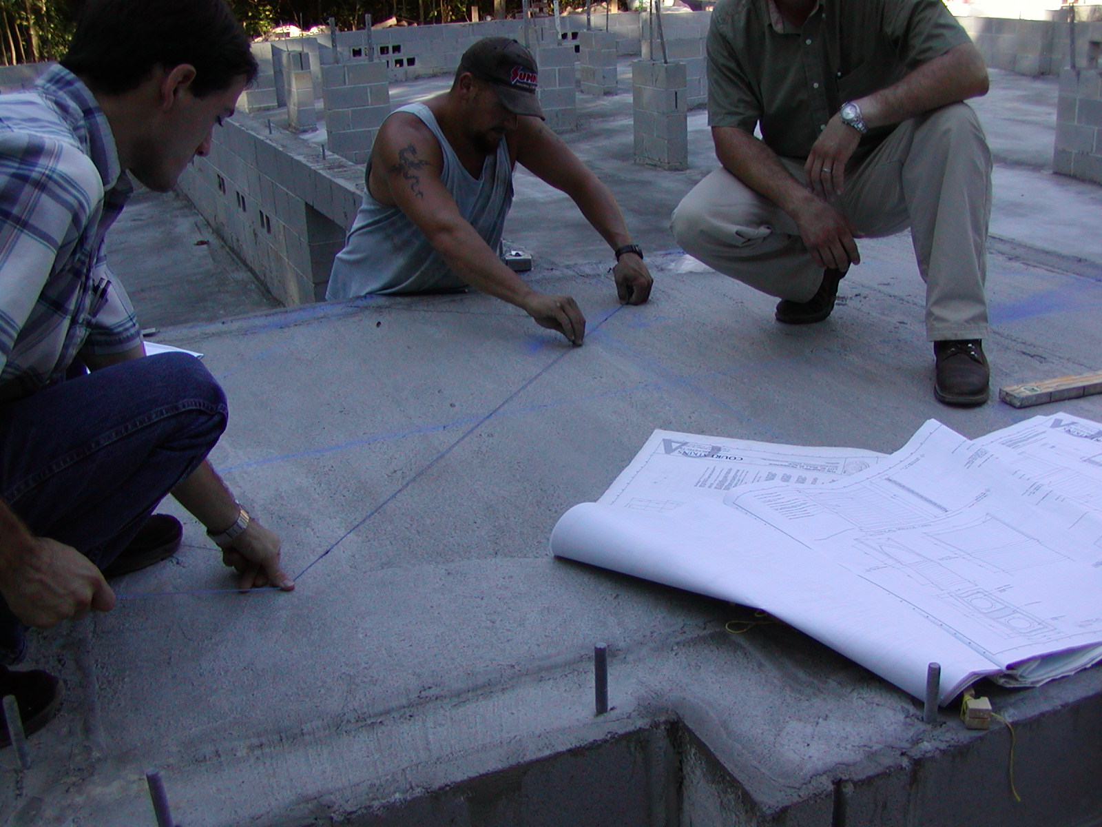 August 21, 2007 -- The fireplace locations are being laid out on the fireplace foundation. The Isokerns will be started today. | ![]() |