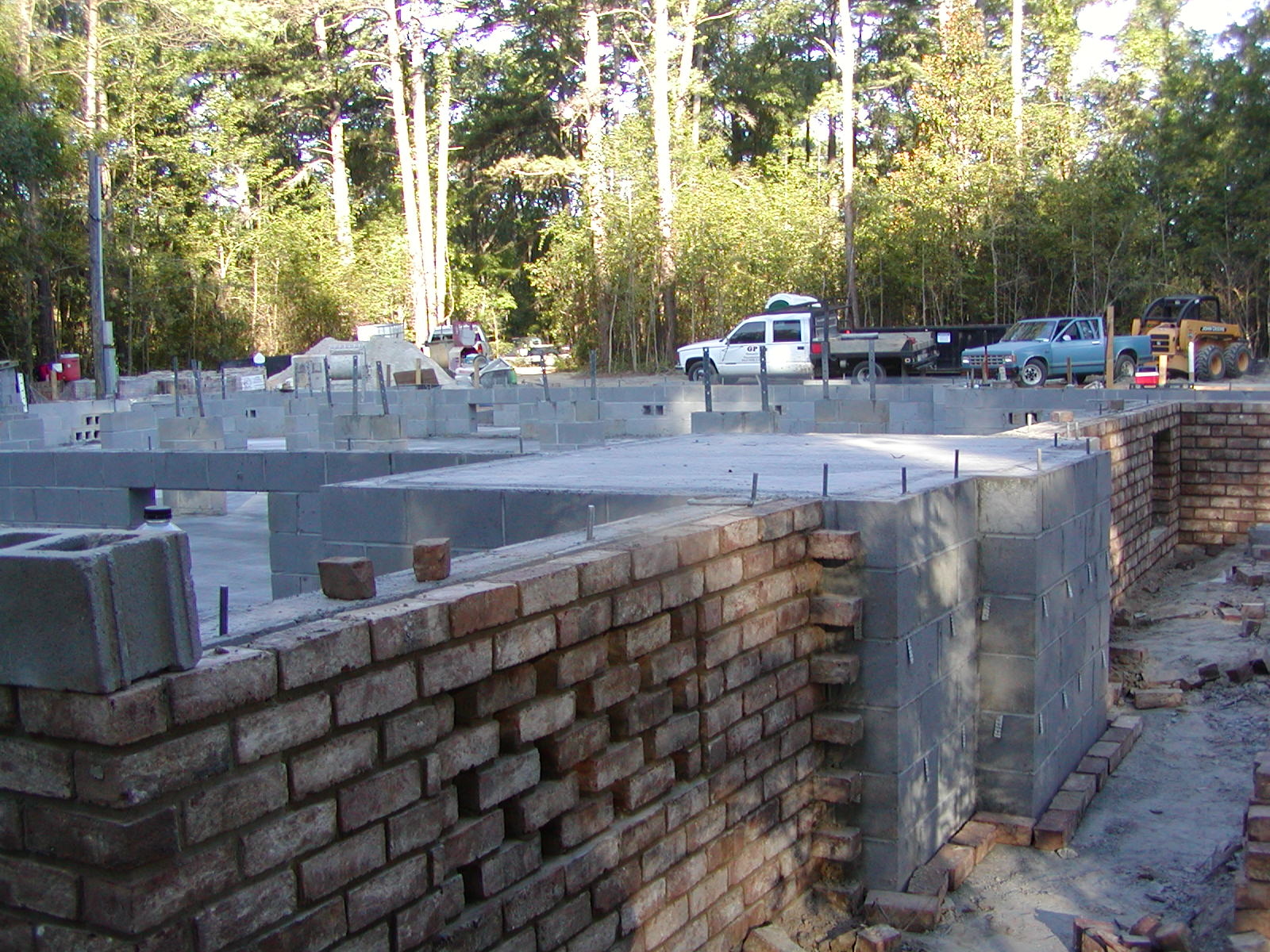 August 21, 2007 -- This is the fireplace foundation before the Isokerns are started. Notice the anchor bolts and steel straps embedded in the bond beam and piers. | ![]() |