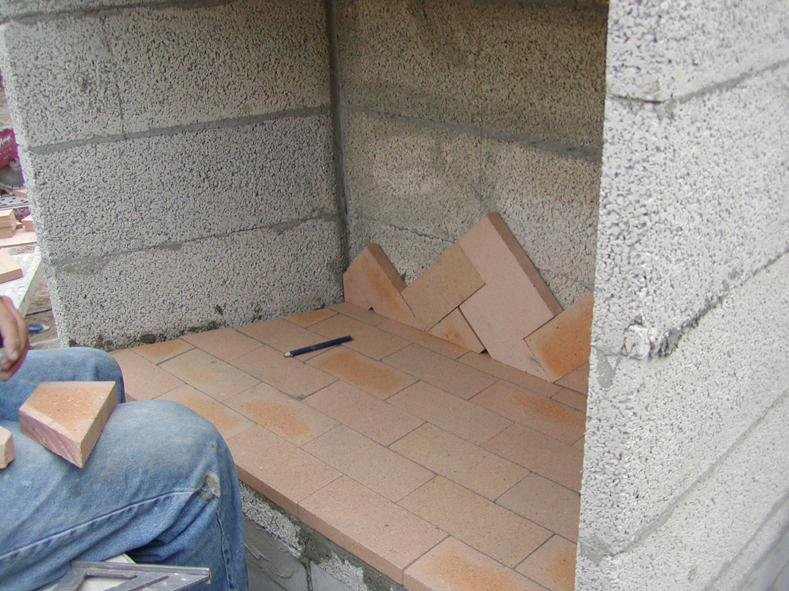 August 30, 2007 -- Firebrick is being installed in the fireboxes. Both fireboxes have herringbone patterns on the sides and back. | ![]() |