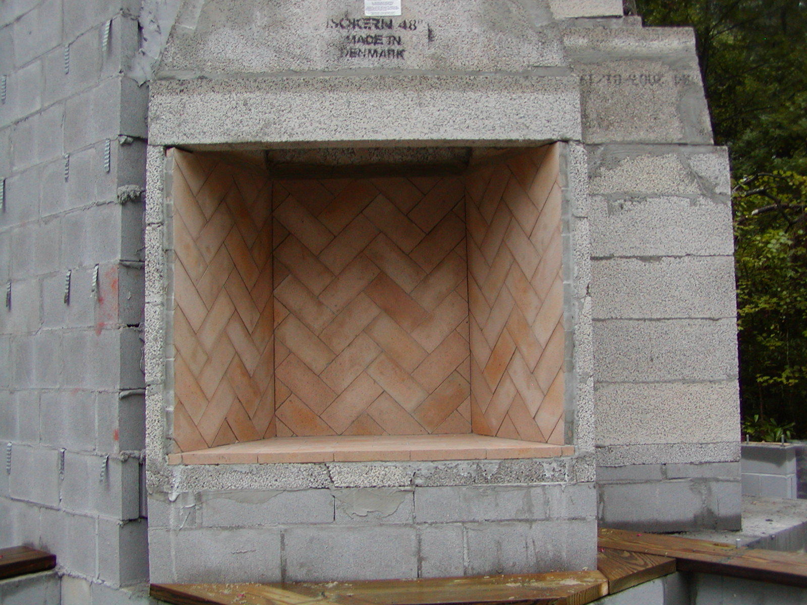 August 31, 2007 -- The firebrick is in both fireboxes. Notice the sill plates near the fireplace are installed. The sill plates for the porches will be installed today, weather permitting. | ![]() |