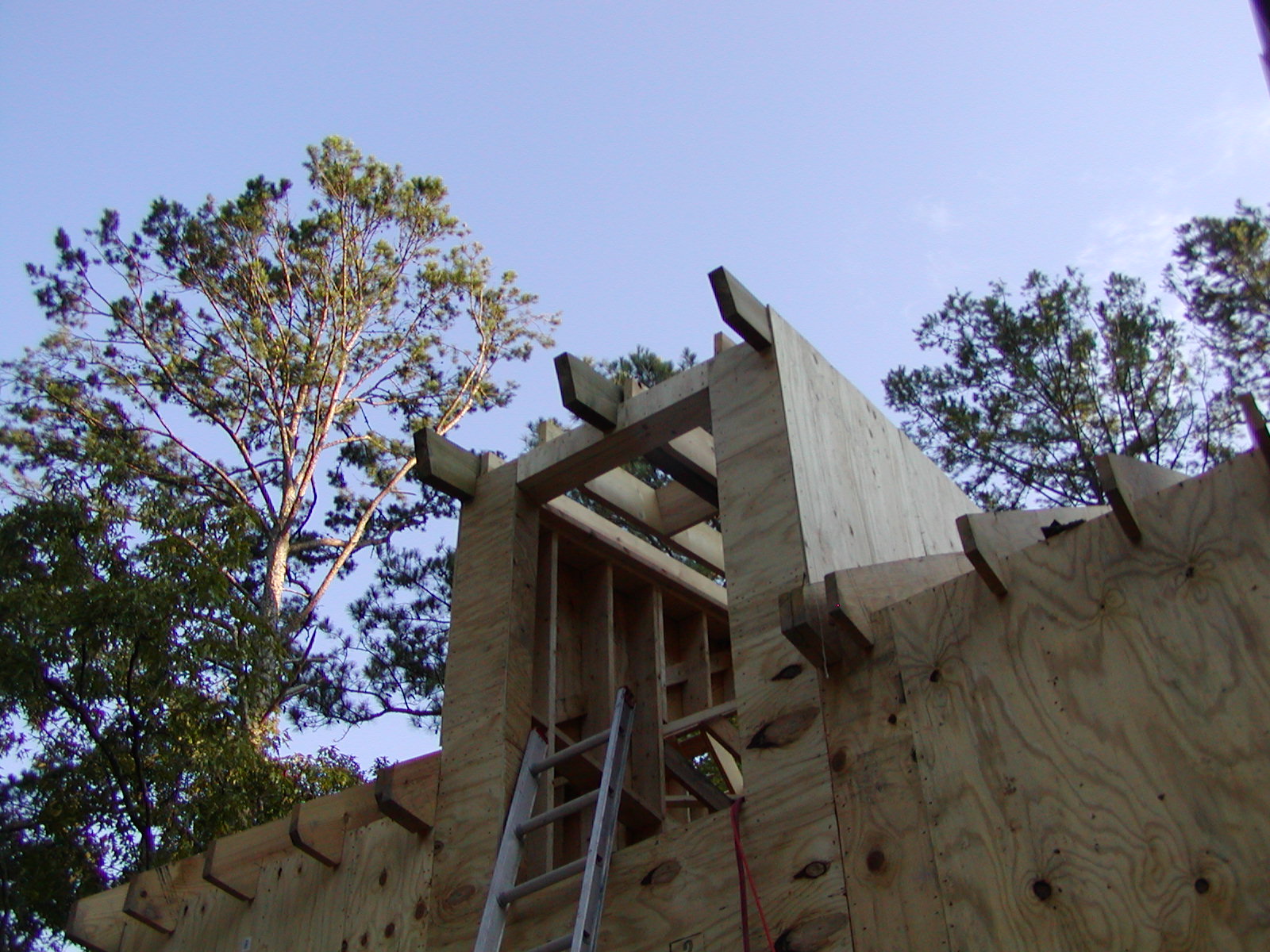 September 12, 2007 -- The 3 x 10 exposed rafters are being installed. Unfortunately, they are in the wrong place in this photo. By the time you read this, they will have been corrected. | ![]() |
