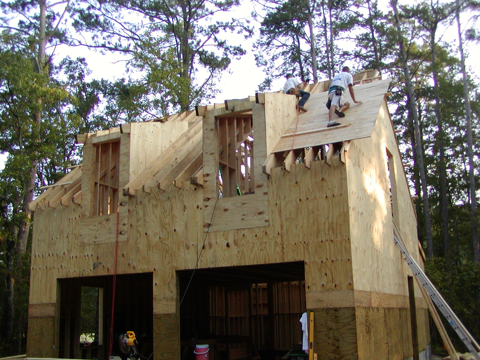 September 13, 2007 -- Plywood sheathing is being installed on the roof today. The exposed rafters on the dormers are not corrected yet. | ![]() |