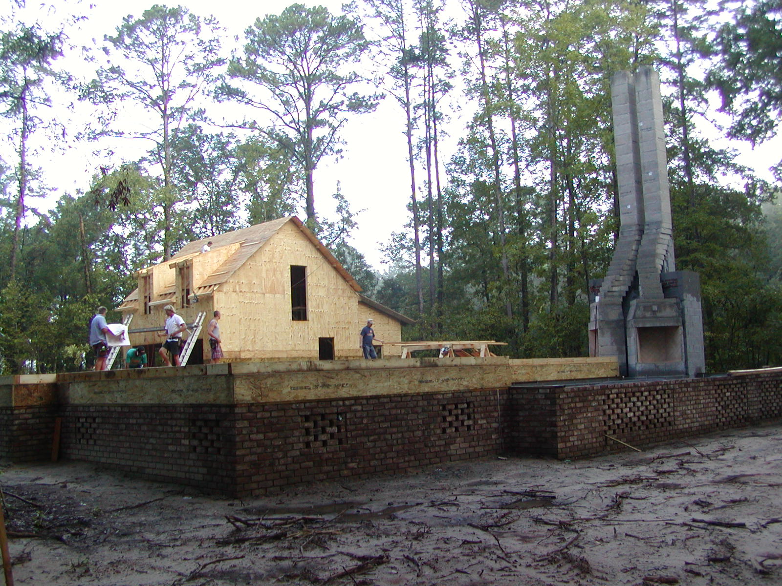 September 14, 2007 -- This is a view from the south east. The close room will be the master bedroom. The rear porch juts out on the right. | ![]() |
