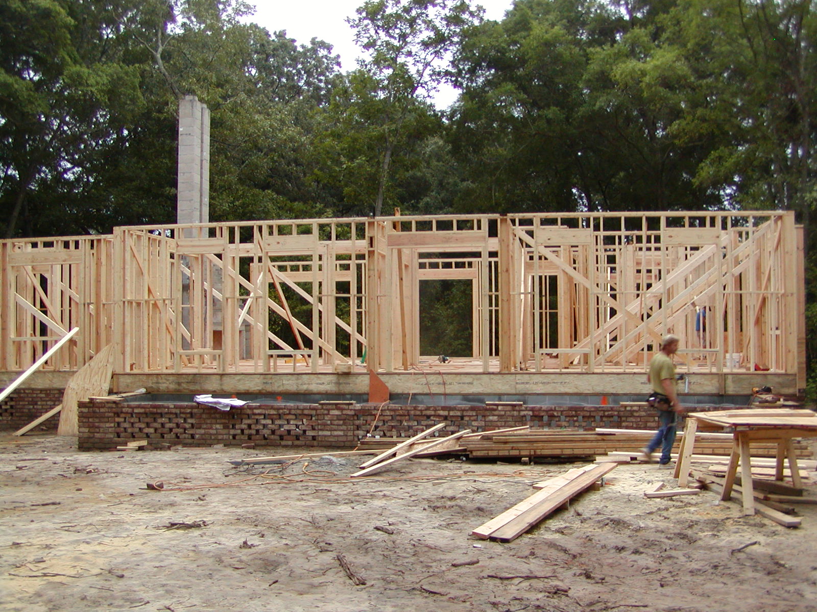 September 21, 2007 -- The front view of the house shows where the porch will be built. The second floor joist system will be installed next week. | ![]() |
