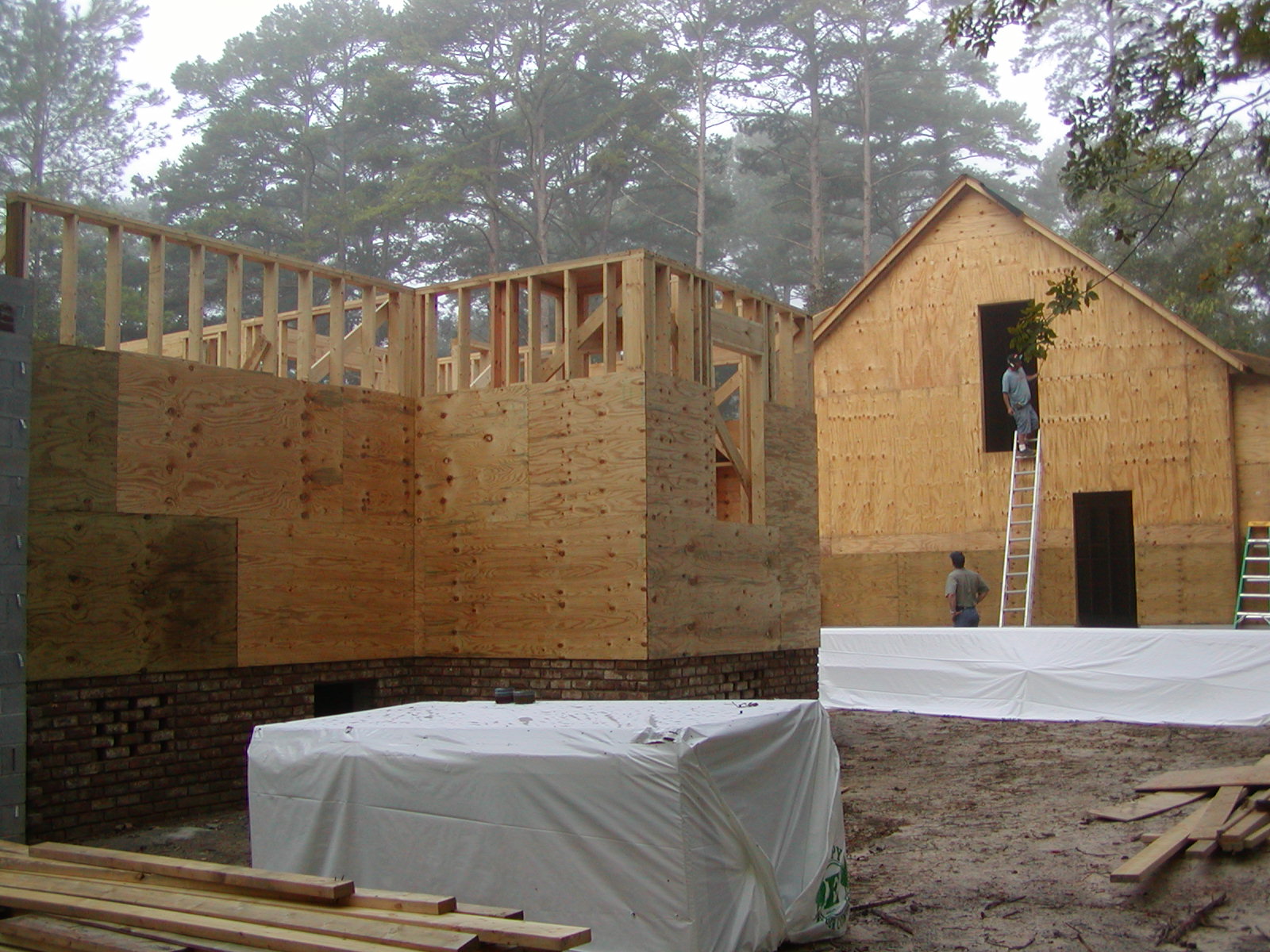 September 27, 2007 -- The early morning haze makes the trees look dim. The opening on the house will be a door when it is cut out. | ![]() |