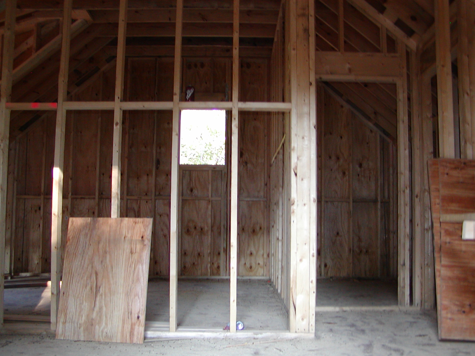 September 28, 2007 -- The garage upstairs apartment has been framed. The far room on the left is a bedroom. Straight ahead on the right is a bathroom. | ![]() |