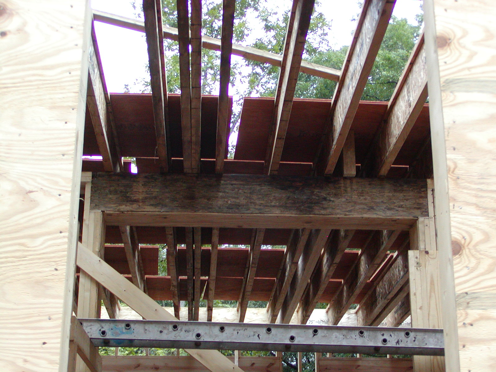 October 3, 2007 -- A dropped beam is in the wall so the second floor trusses could run from the front to the rear of the house with no breaks. | ![]() |
