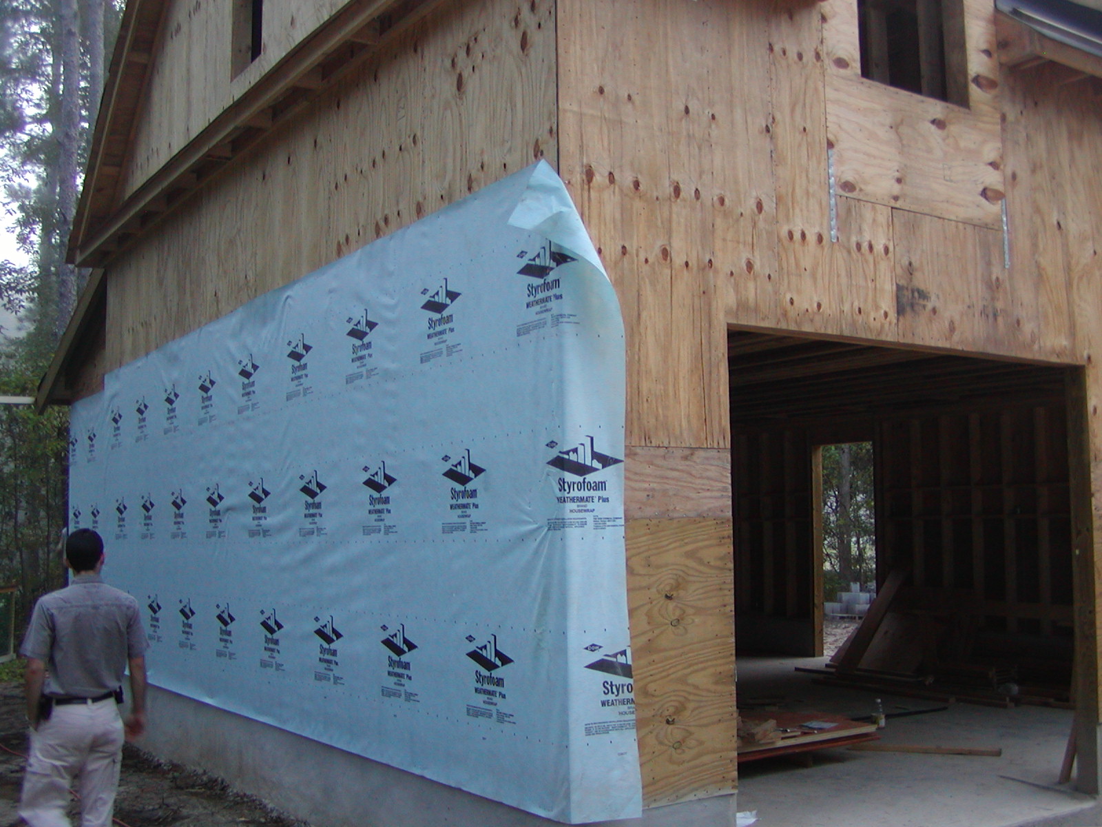 October 9, 2007 -- Wrap is being installed on the garage. Today, it will be dried in. | ![]() |