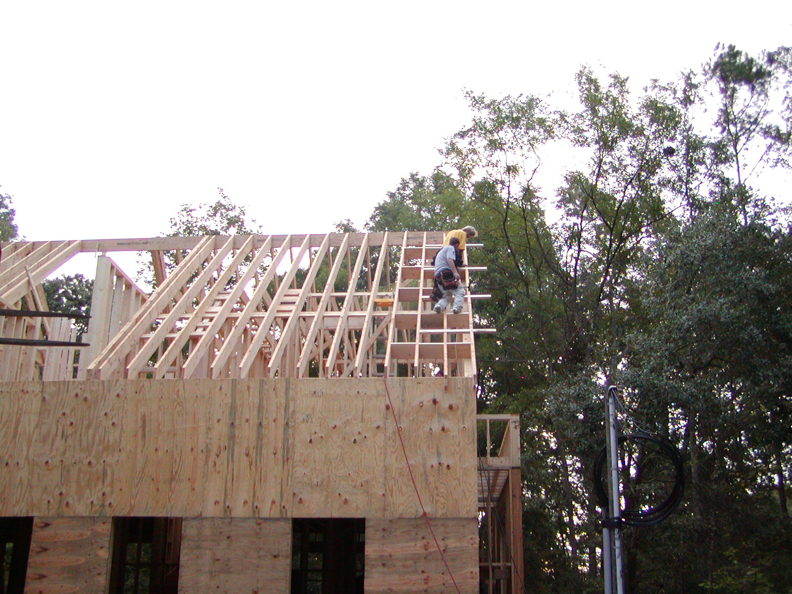 October 19, 2007 -- The rafters are being blocked. Plywood sheathing will be installed on the roof today, weather permitting. | ![]() |
