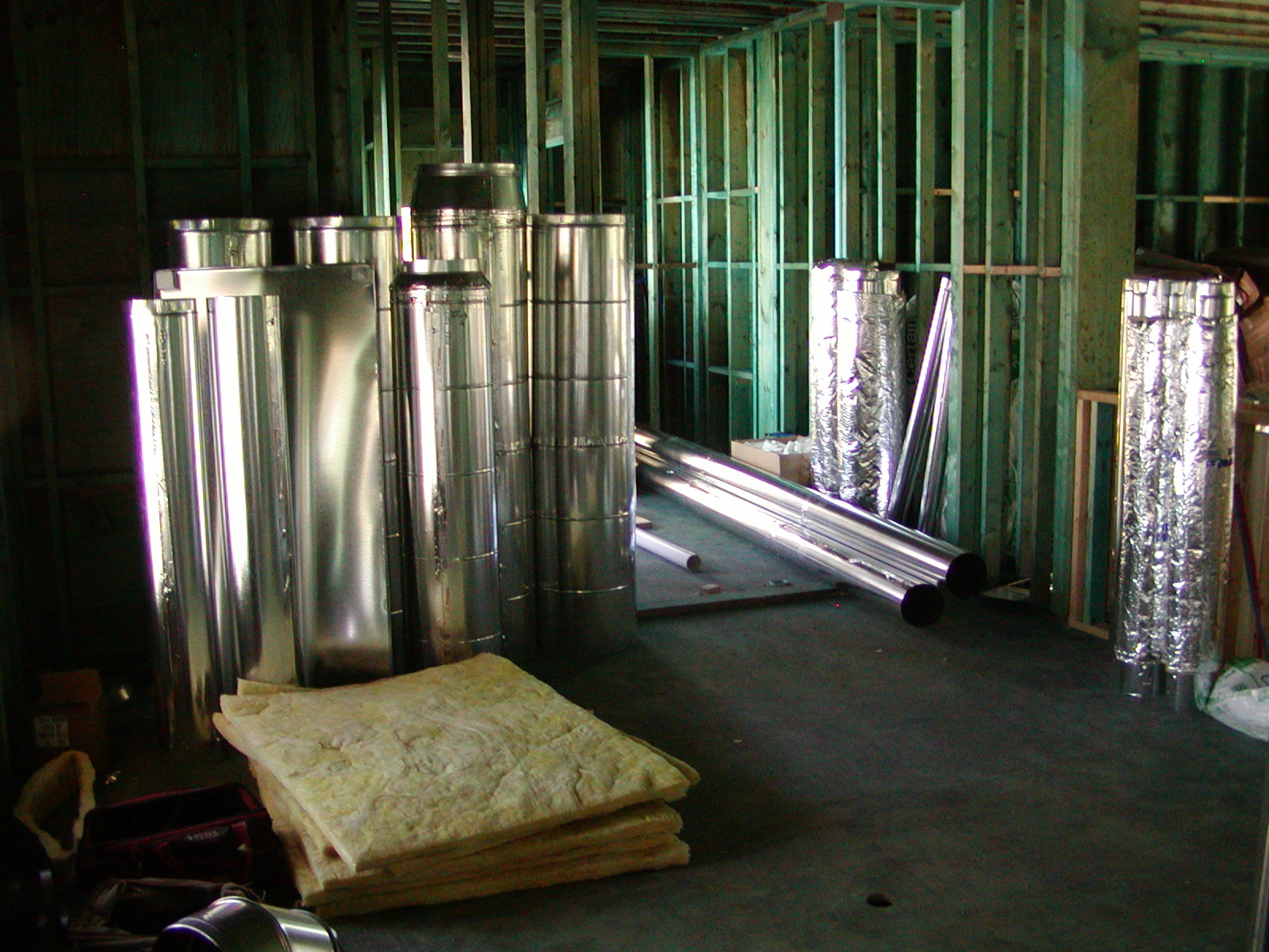 November 16, 2007 -- HVAC (Heating, Ventilating and Air Conditioning) rough in has begun. The house and garage will have several independent units for even cooling and heating. | ![]() |