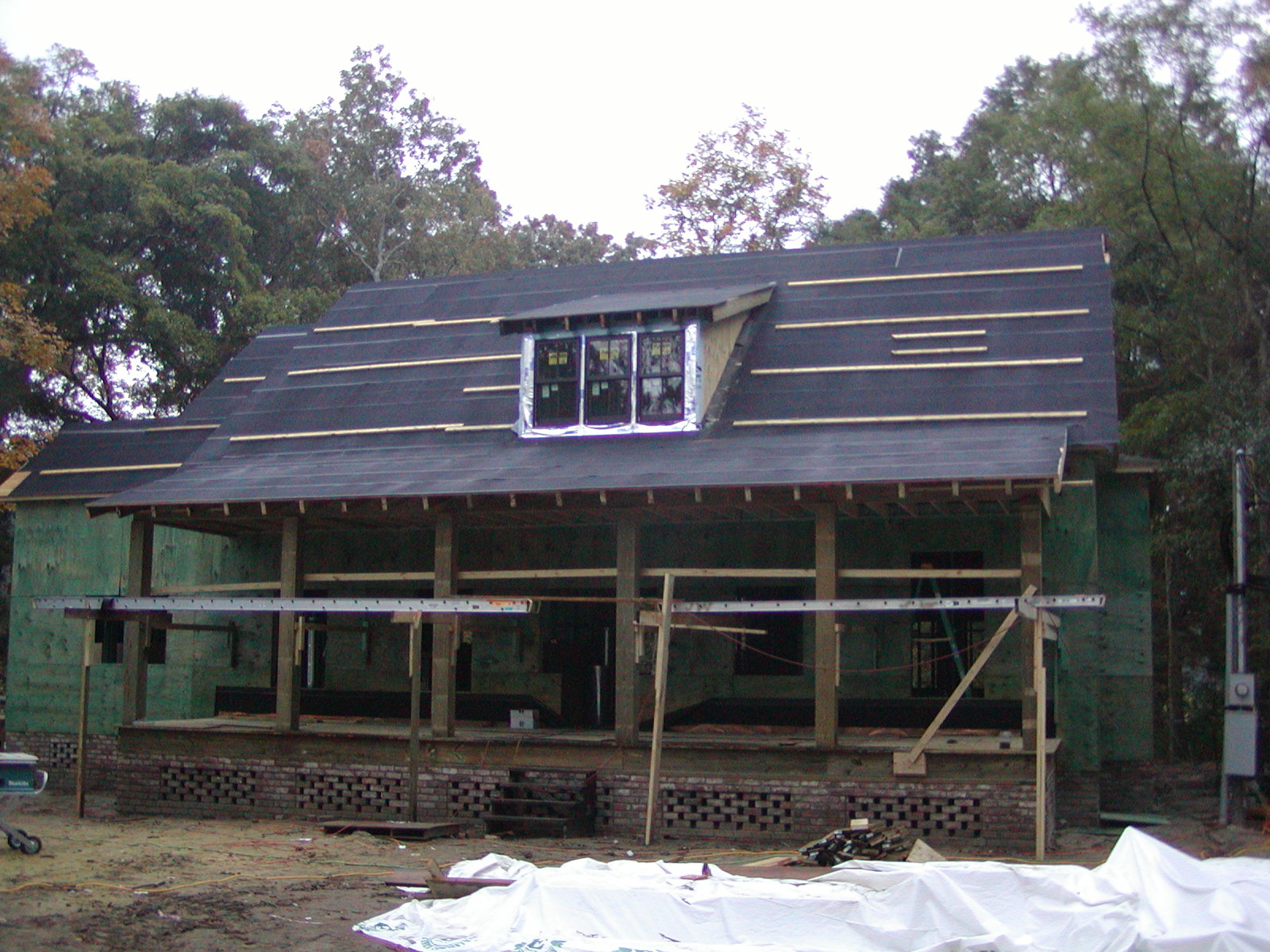 November 19, 2007 -- The porch now has ice and water shield on it. The dormer windows are installed. | ![]() |