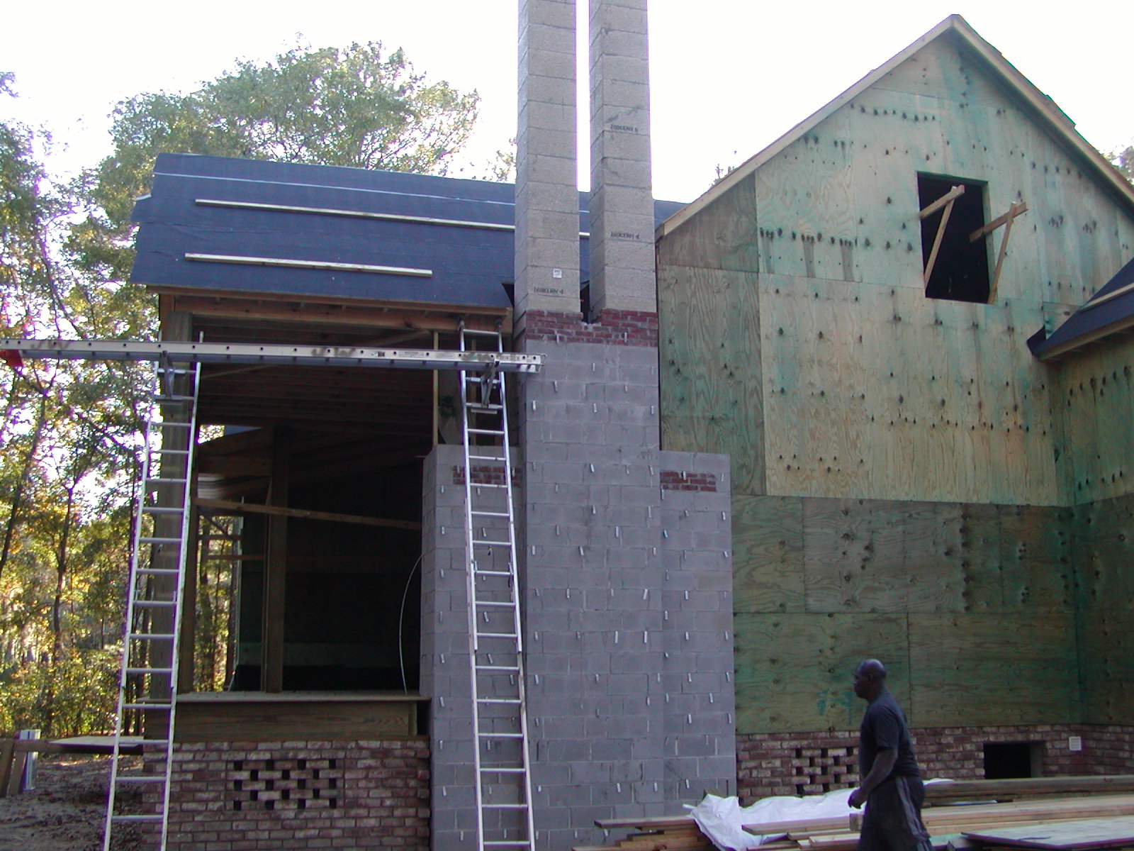 November 28, 2007 -- The rear porch roof is on, sheathed and covered with ice and water shield. | ![]() |