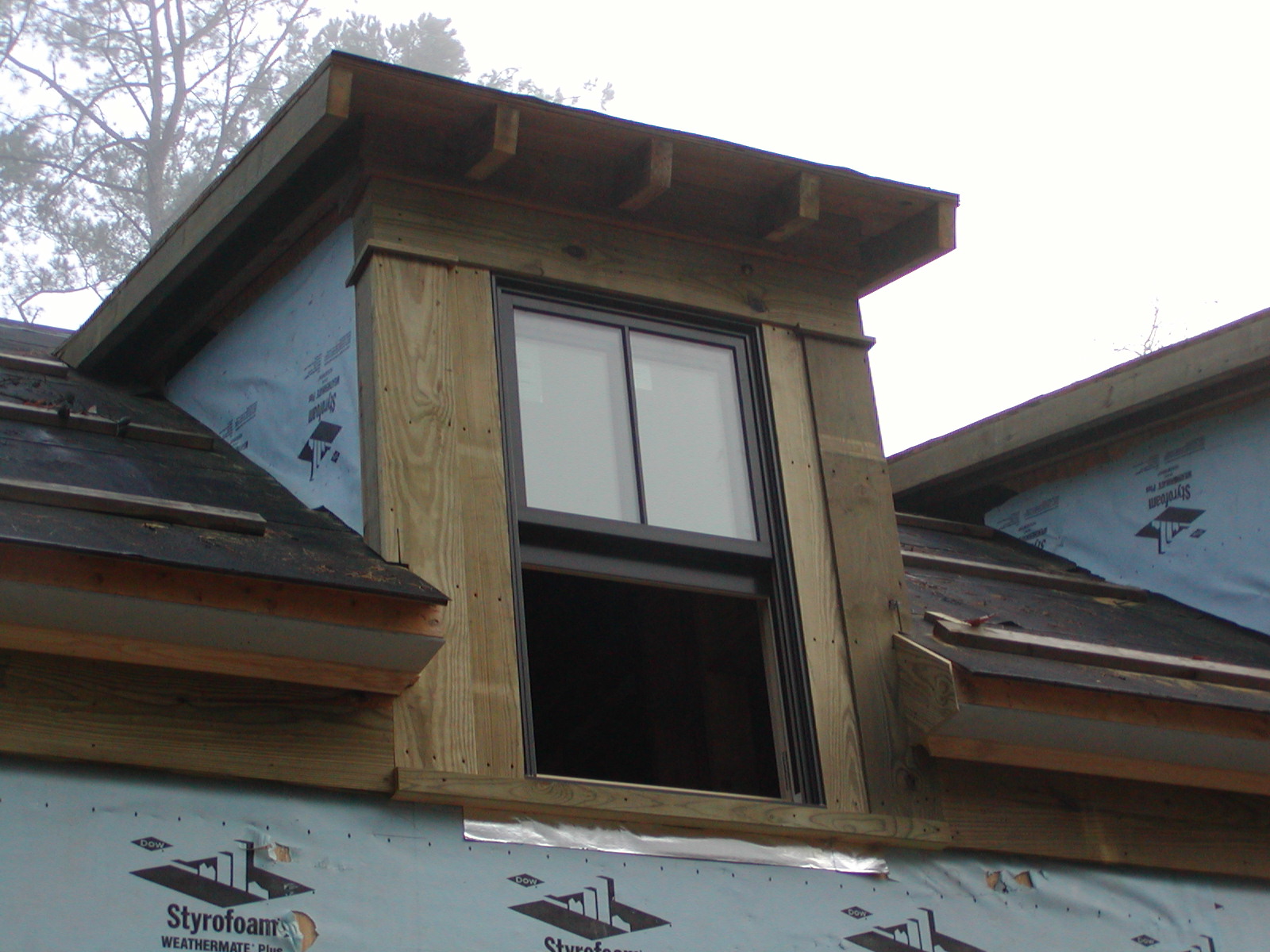 December 12, 2007 -- The garage dormers are being trimmed. The fascia still has to be installed. | ![]() |
