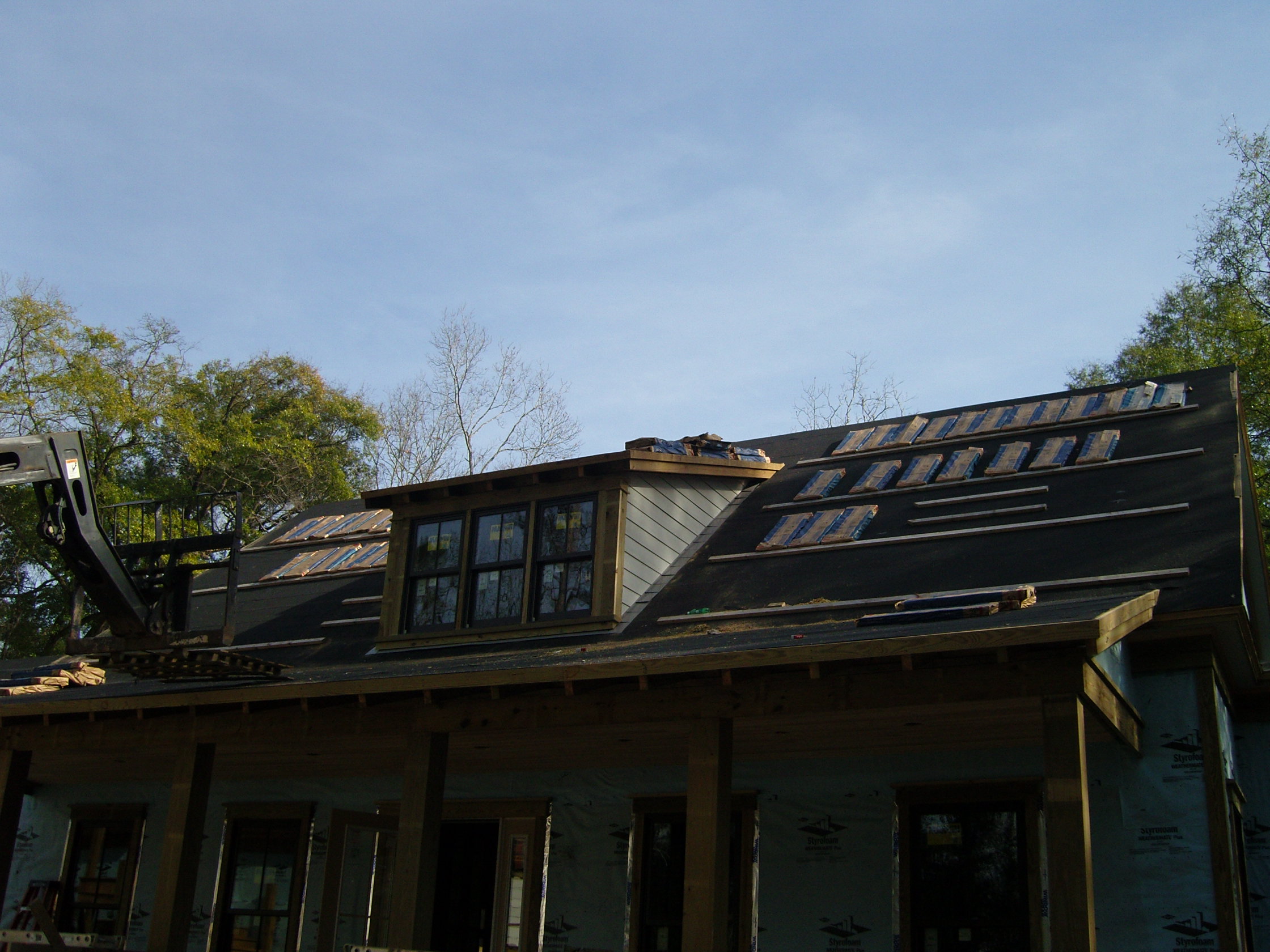 January 10, 2008 -- Roofers now have bundles of shingles on the roof and have started work on rear gables. | ![]() |