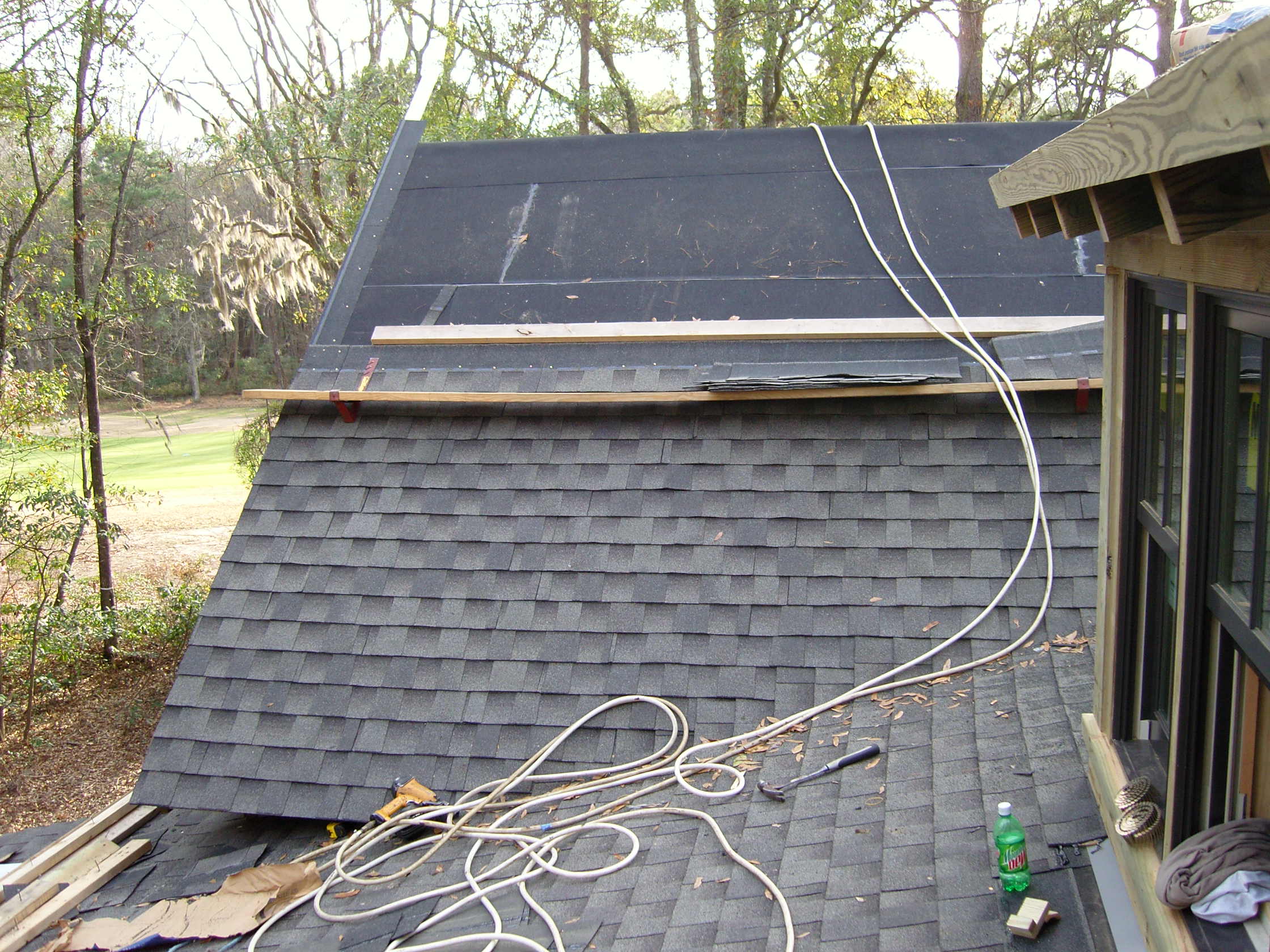 January 10, 2008 -- Shingles are being installed on the gable above the master bedroom. | ![]() |