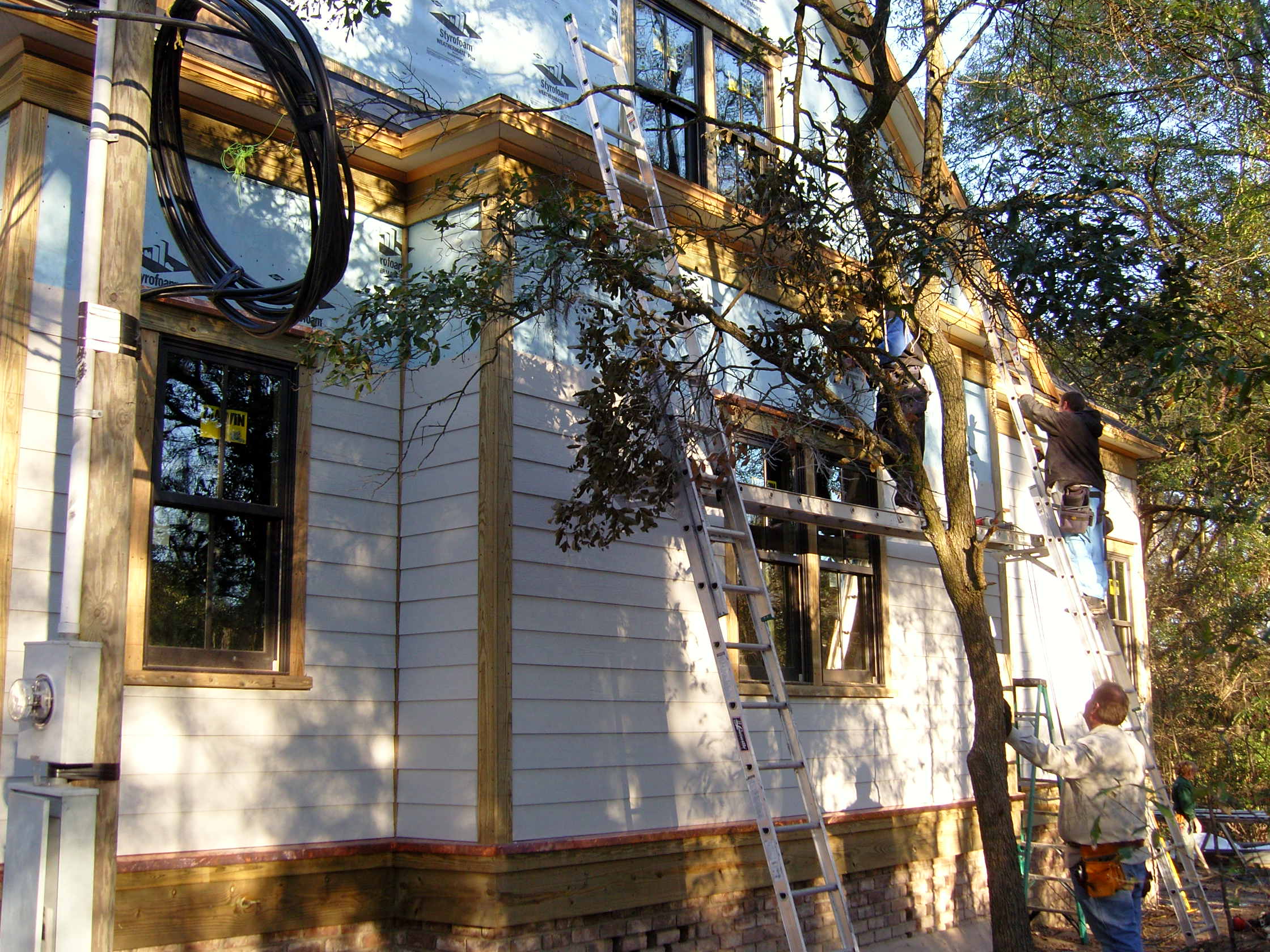 January 15, 2008 -- Siding is being installed around the master bedroom and bathroom. | ![]() |