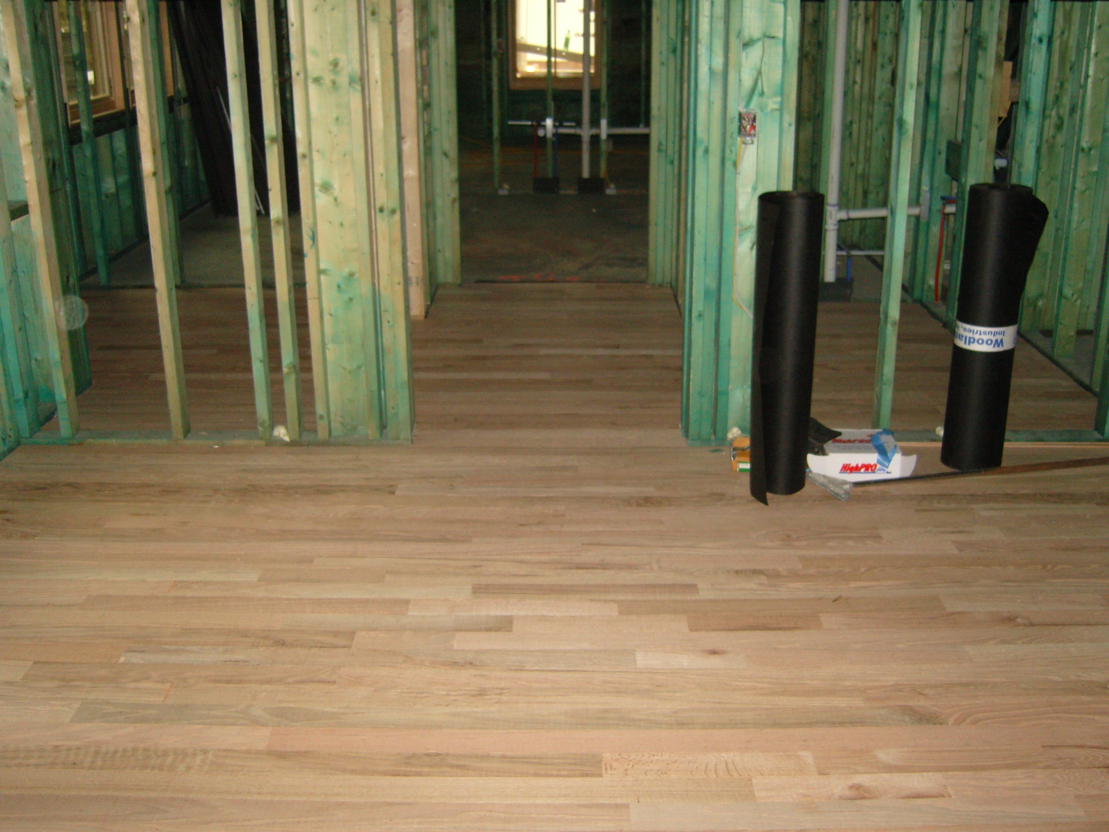 January 18, 2008 -- The oak flooring has now been installed in both master closets and the hallway. | ![]() |