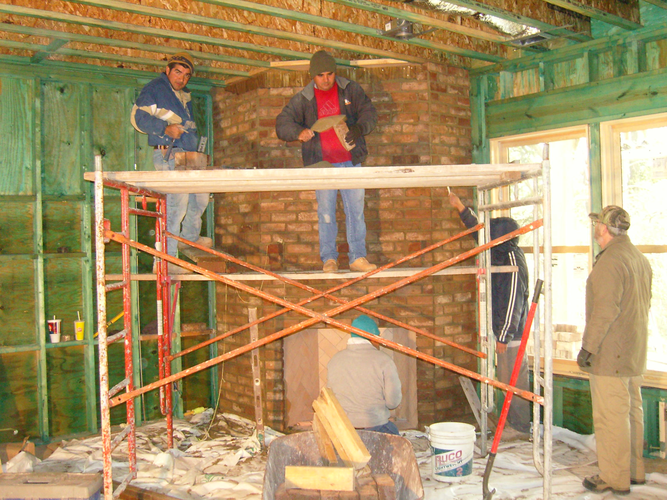January 22, 2008 -- The interior brick fireplace has just been completed. | ![]() |