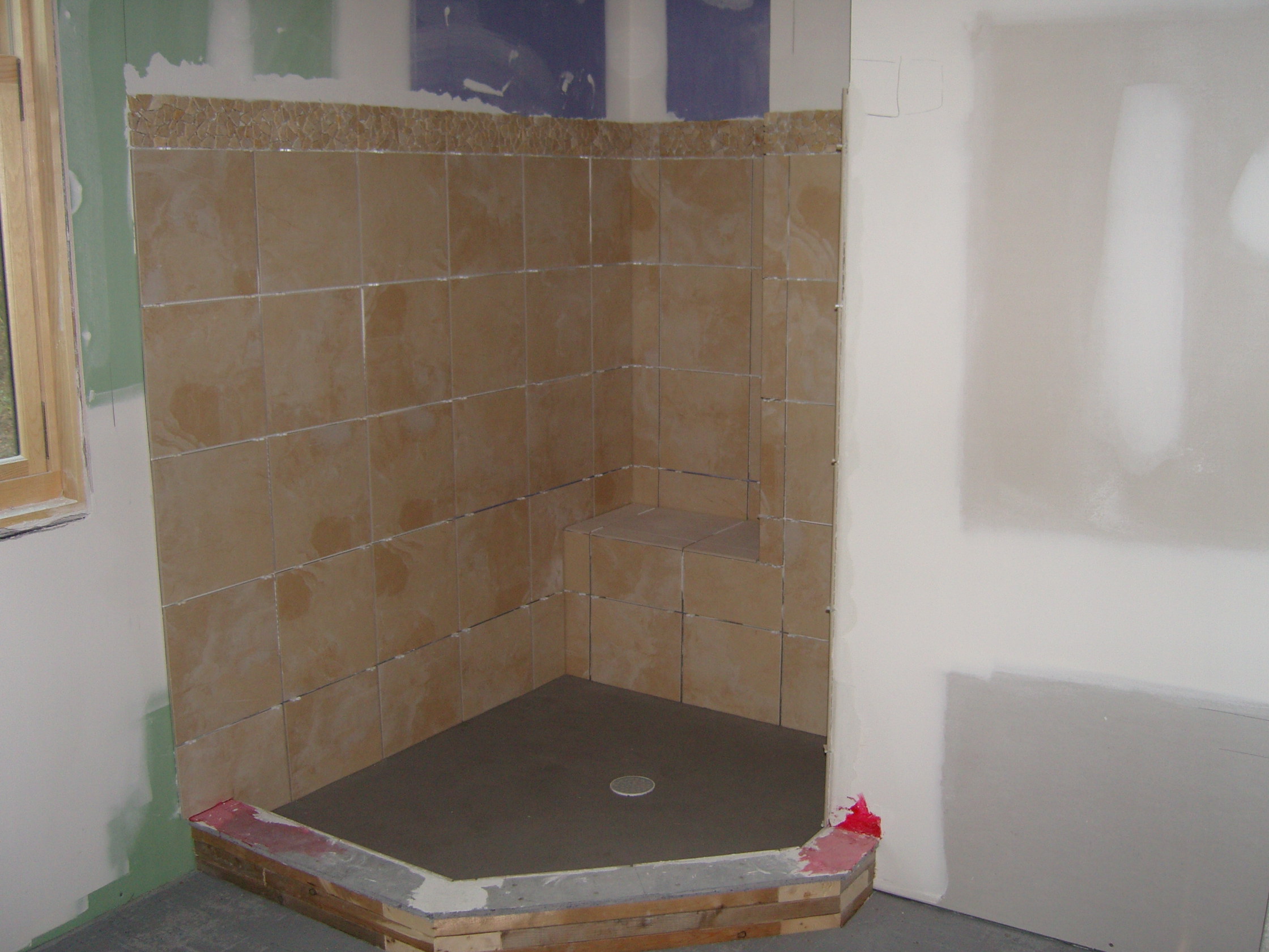 February 7, 2008 -- Tile is going up quickly in the master shower. | ![]() |