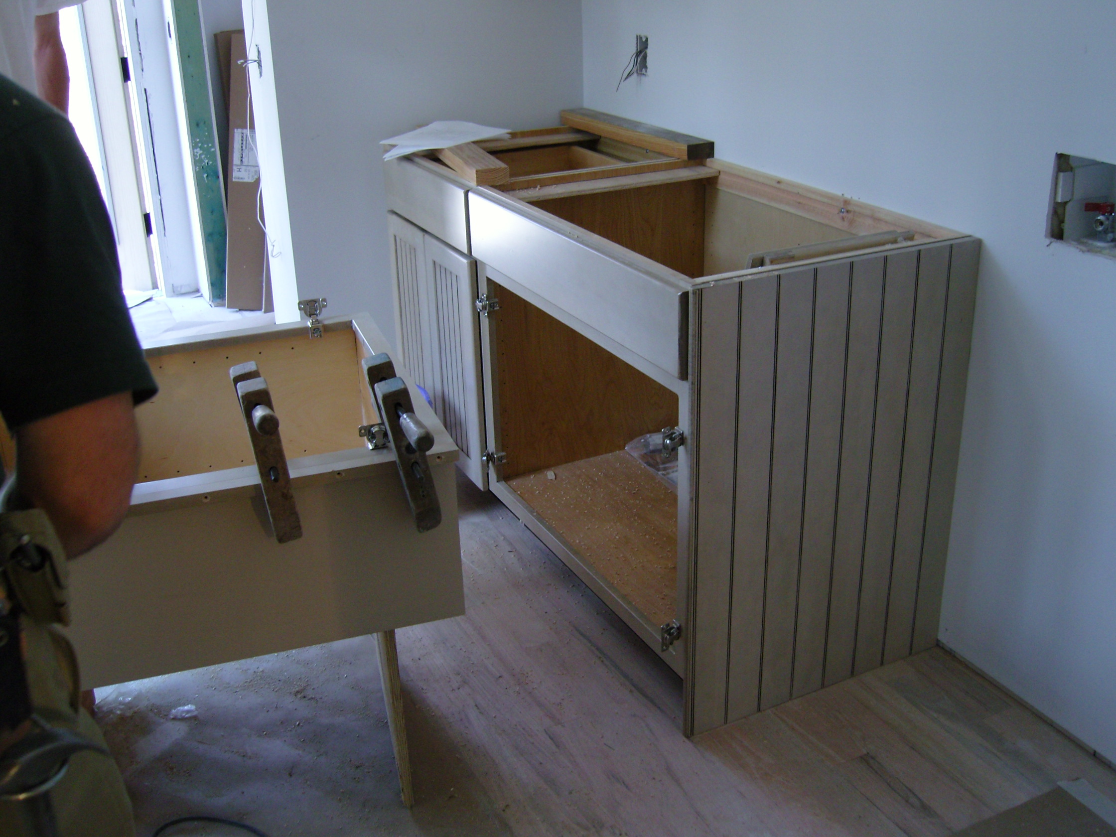 March 3, 2008 -- Cabinets are being installed in the laundry room.