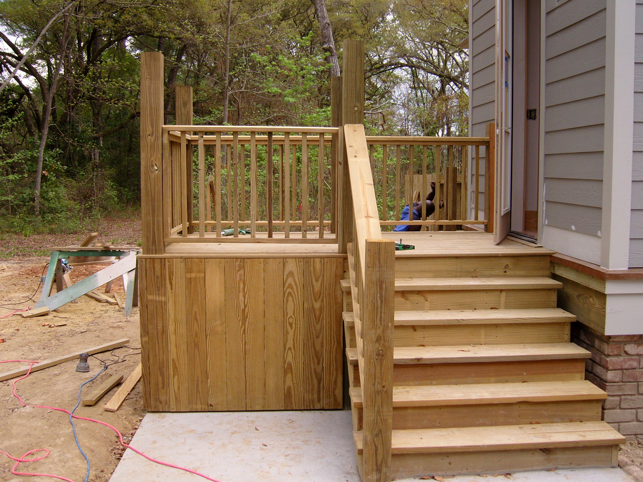April 2, 2008 -- The wheelchair lift stoop now has fencing around the bottom and a gate at the top. | ![]() |