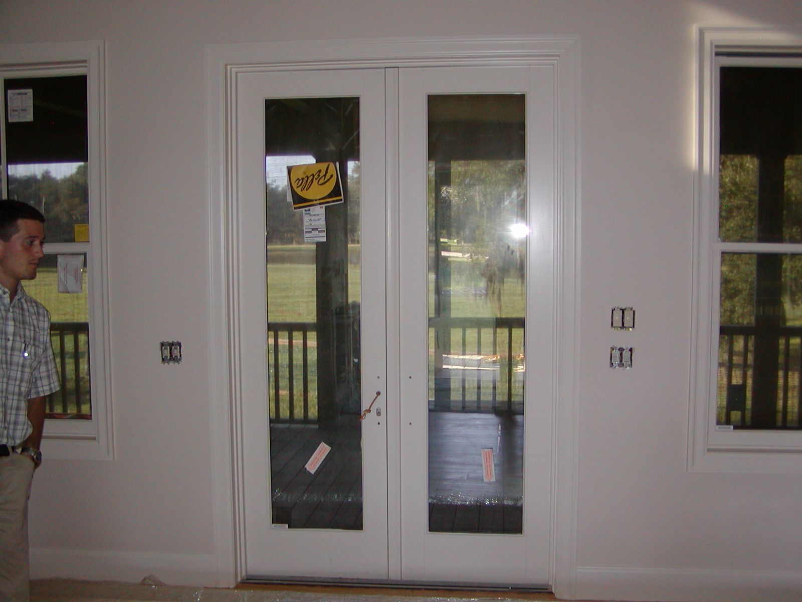 September 6, 2007 -- Although the hurricane fabric is difficult to see through from the outside, it is not difficult to see through if you are on the inside. It is in place on the windows and doors in this photo. |