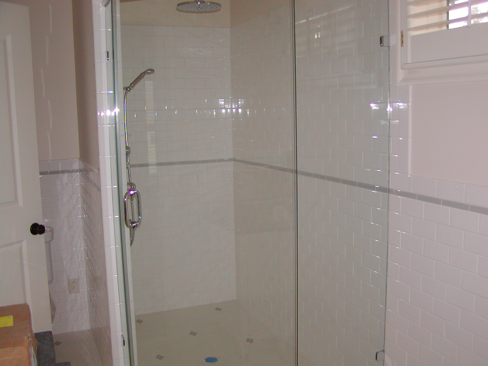 October 22, 2007 -- The shower door has been installed in the master shower. They are a bit difficult to see since they are clear glass. | ![]() |