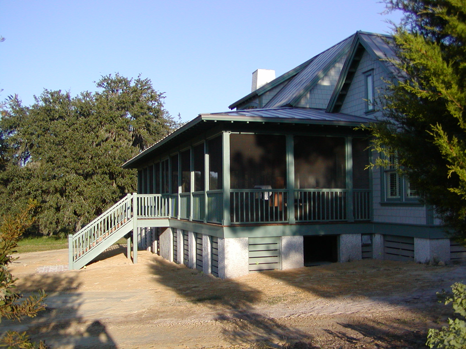 November 8, 2007 -- The barrier fence is down. This is the rear porch and steps down to the ground. The access cover under the porch is open. | ![]() |