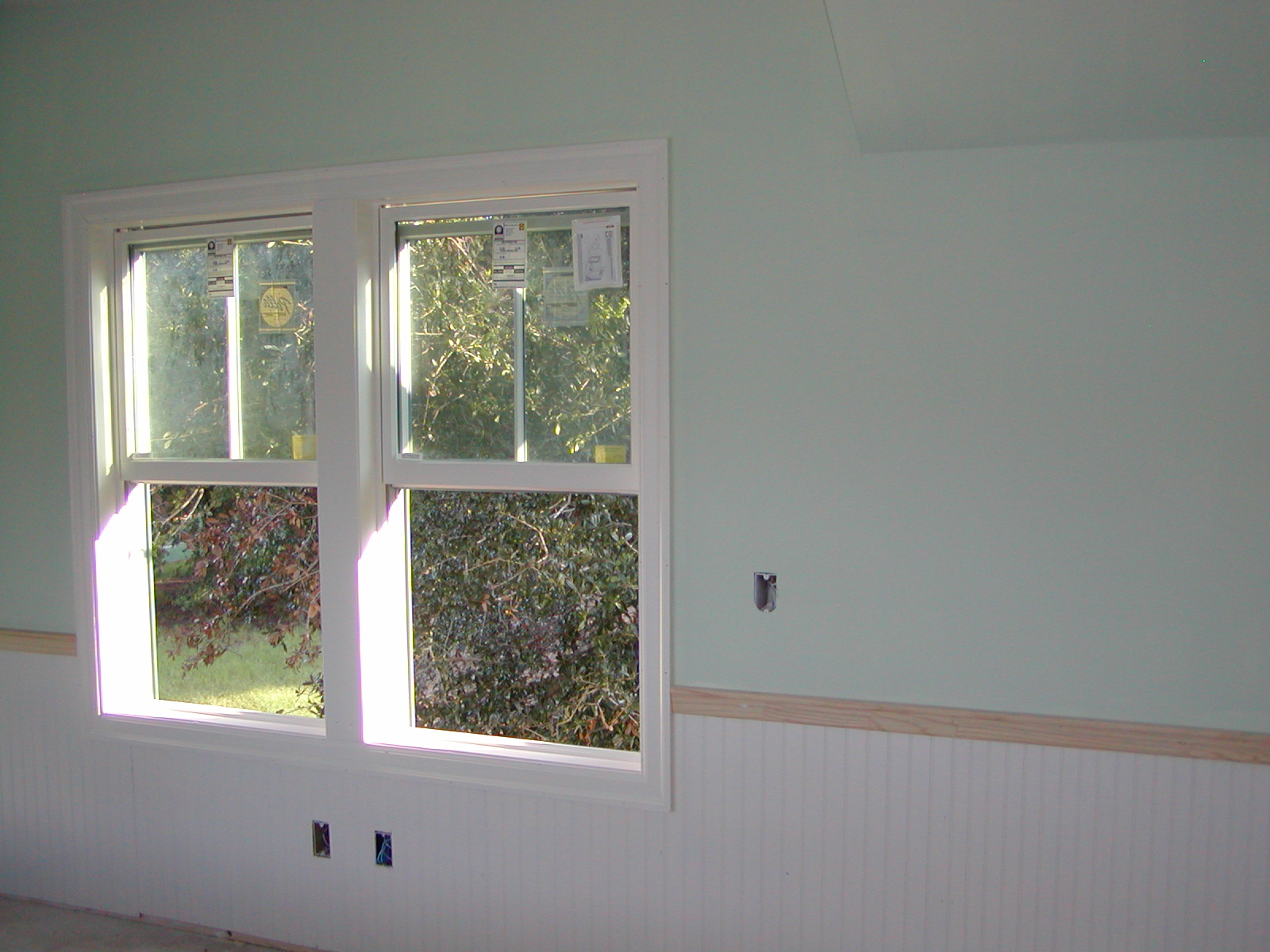 September 13, 2007 -- Upstairs, the windows are painted. Chair rail is being installed between the sheet rock and wainscot. The walls have their first coat of paint. | ![]() |