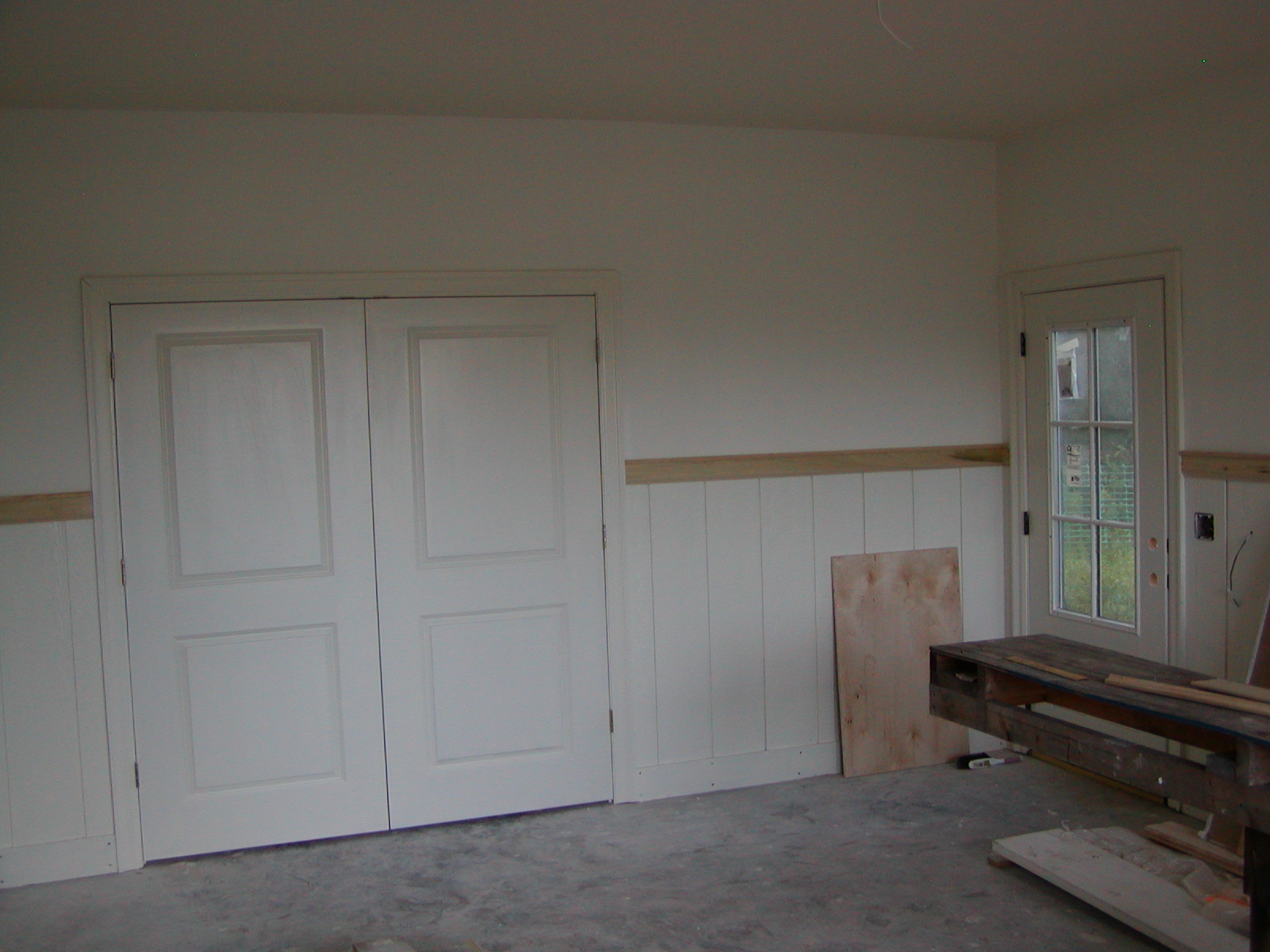 September 14, 2007 -- Trim between the "T-111" and sheet rock has been installed in the garage bay. | ![]() |