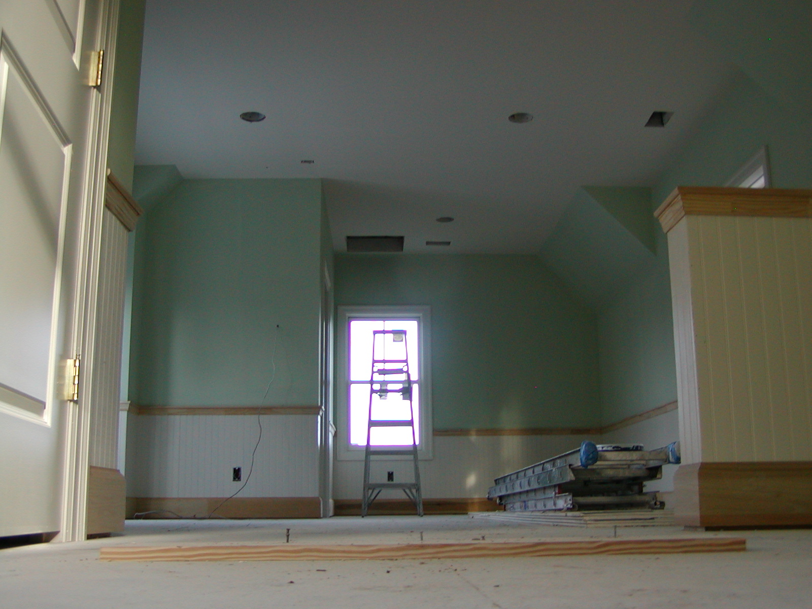 September 14, 2007 -- Baseboards and chair rail are finished in the main room. Baseboard is needed in the bathroom. The walls have their first coat of paint. | ![]() |