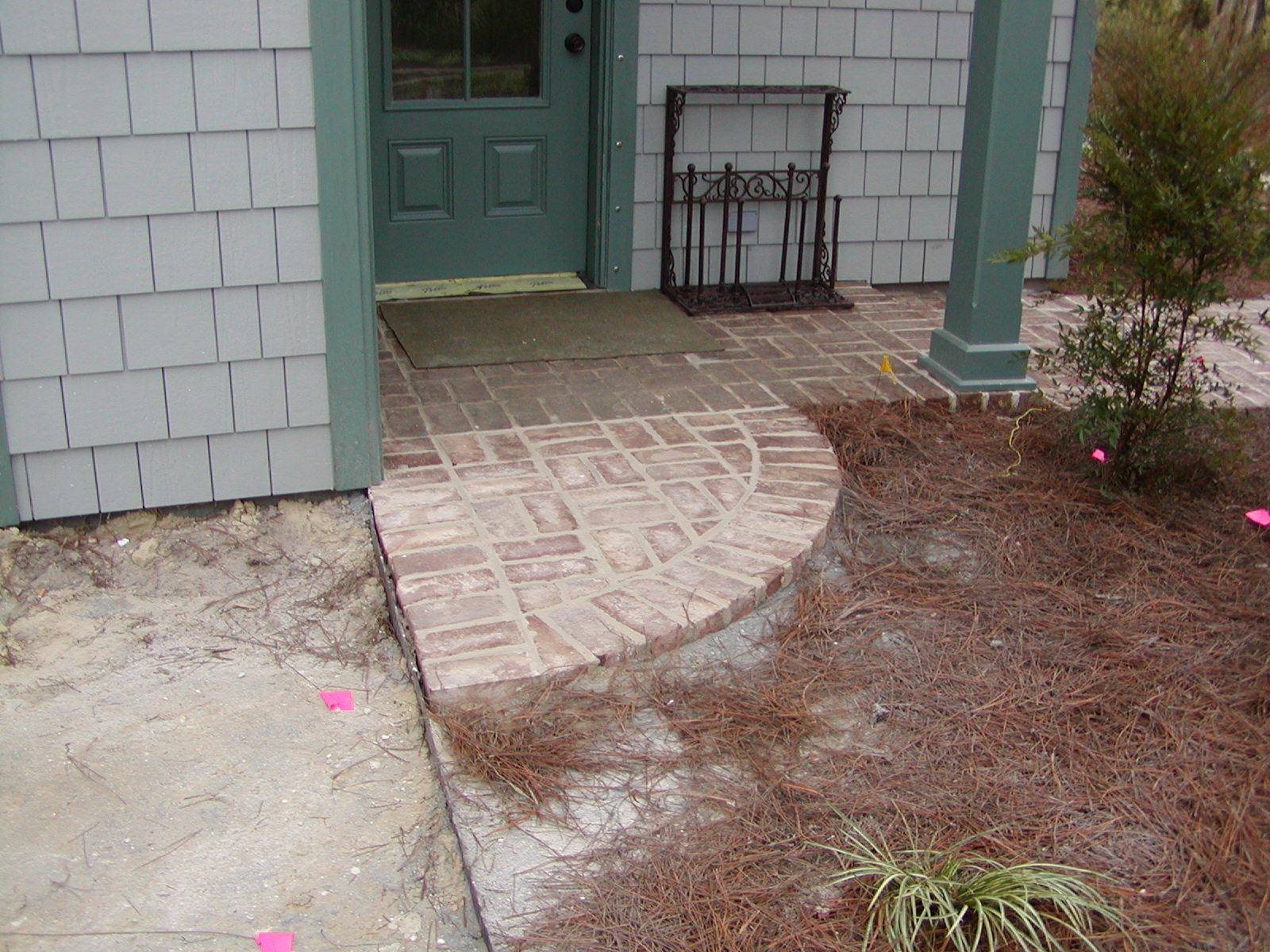 November 29, 2007 -- A nice curved brick walkway has been built from the storage room to the driveway. | ![]() |