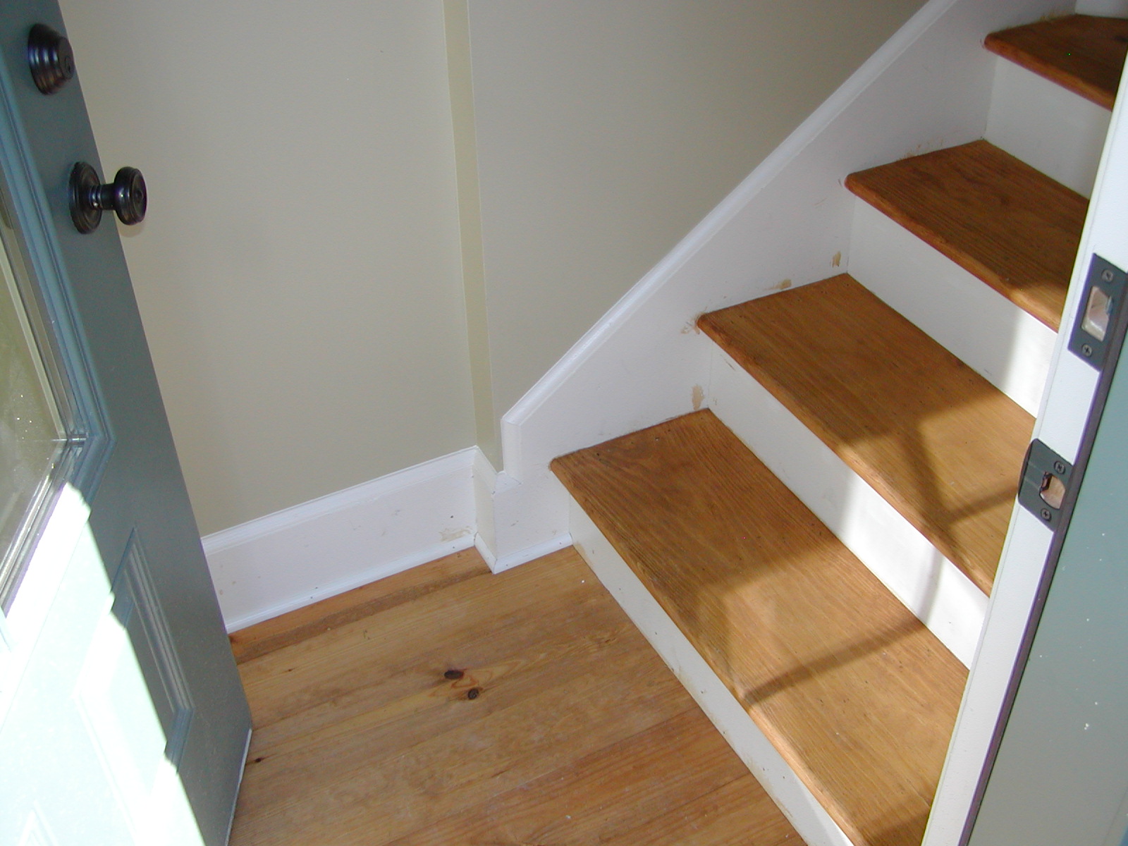 November 30, 2007 -- There is a wood floor at the foot of the stairs inside. Outside, there is a brick stoop and walk leading to the cottage. | ![]() |
