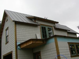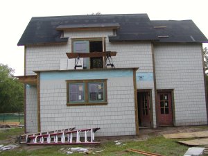 June 7, 2007 -- Siding continues to be installed. This morning the vent (at the top) was built and will be installed.