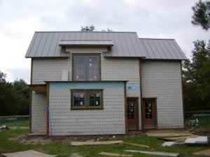 June 1, 2007 -- Siding is being installed. The exterior trim is finished.