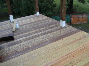 October 5, 2007 -- The deck has been installed over the storage room. Soon the railings will be built.