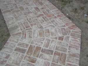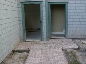 October 16, 2007 -- The garage has a brick stoop leading to a brick sidewalk to the house. The door thresholds will have brick supports under them today.