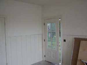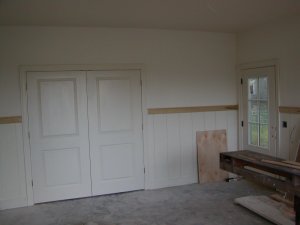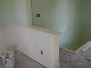 September 12, 2007 -- Interior painting is being completed. There is wainscot around the bottom of the room.