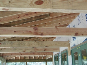 January 17, 2007 -- A view of the exposed beams on the back porch.