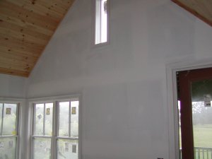 July 12, 2007 -- The cottage has its first coat of interior paint (after the primer). The interior trim is also painted.