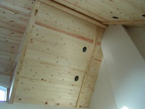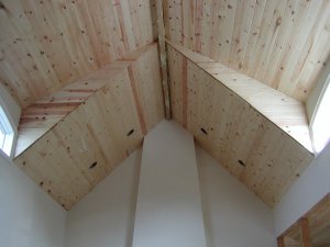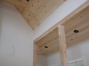 July 20, 2007 -- The ceiling beams are finished. There are four of them in the great room. The center two beams get track lighting.