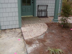 November 29, 2007 -- A new walk has been built from the front door to the driveway. It is brick to match the other walks. The driveway will be filled with gravel.