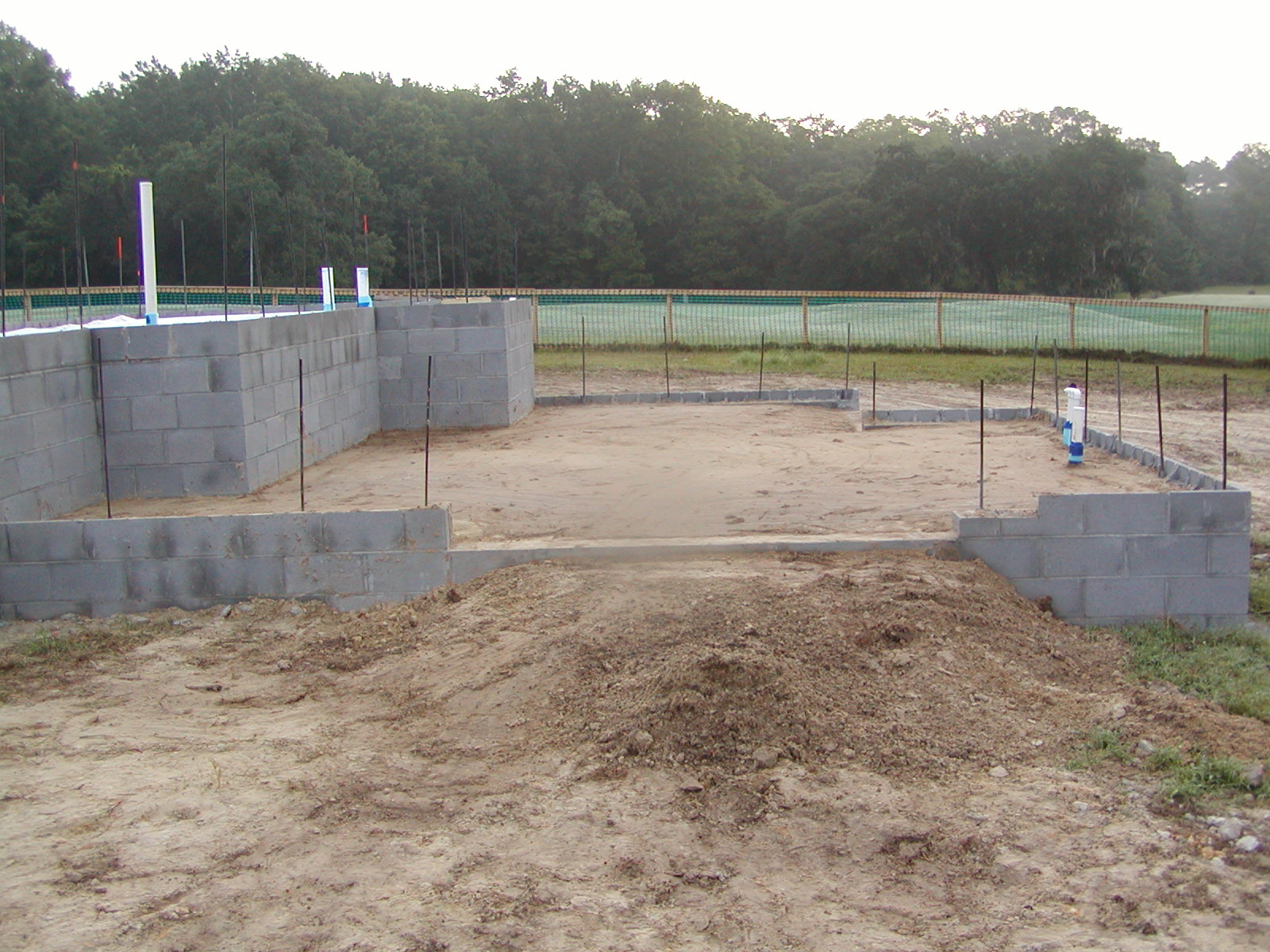 August 15, 2008 -- The garage floor is packed. It will be dug out slightly around the doors when the forms are put in place. The garage will get steel mesh, but not insulation since it does not have floor heating. |