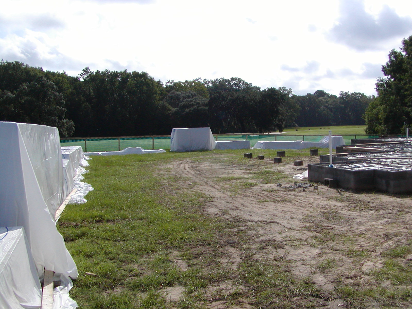 August 26, 2008 -- The framing material is now on site. Although it does not look like it, there is a house under the plastic. You just have to cut and nail in the correct place and you have a house. Framing will start a week from today (the day after Labor Day). |